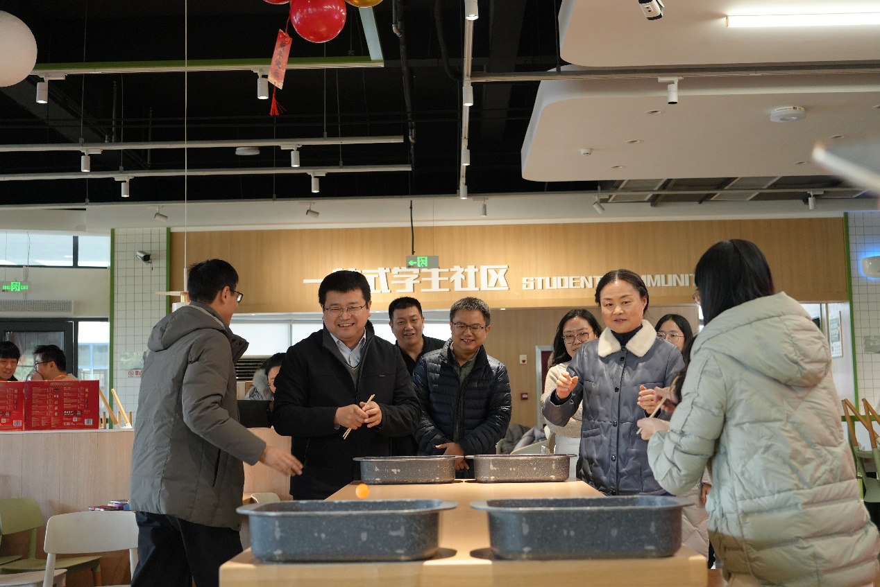 随着互动环节的开启,现场气氛迅速升温,欢乐氛围直达顶峰。“筷子夹乒乓球”接力赛率先登场,参赛教师们凝神聚力、默契配合,在限定时间内争分夺秒完成挑战,灵巧的动作与紧张的节奏引得台下掌声、欢呼声不断,既考验手部协调性,更彰显团队协作力。随后,“听歌识曲”“你画我猜”等趣味游戏轮番上阵,老师们踊跃参与、各展所长,诙谐的互动、默契的配合与意外的笑点让现场笑声此起彼伏,台上台下融为一体,彻底沉浸在轻松愉悦的节日氛围中。
