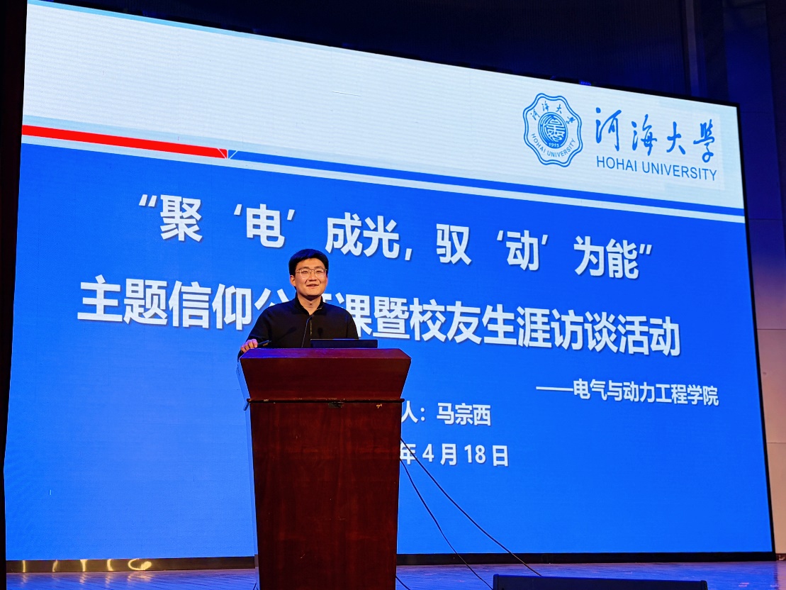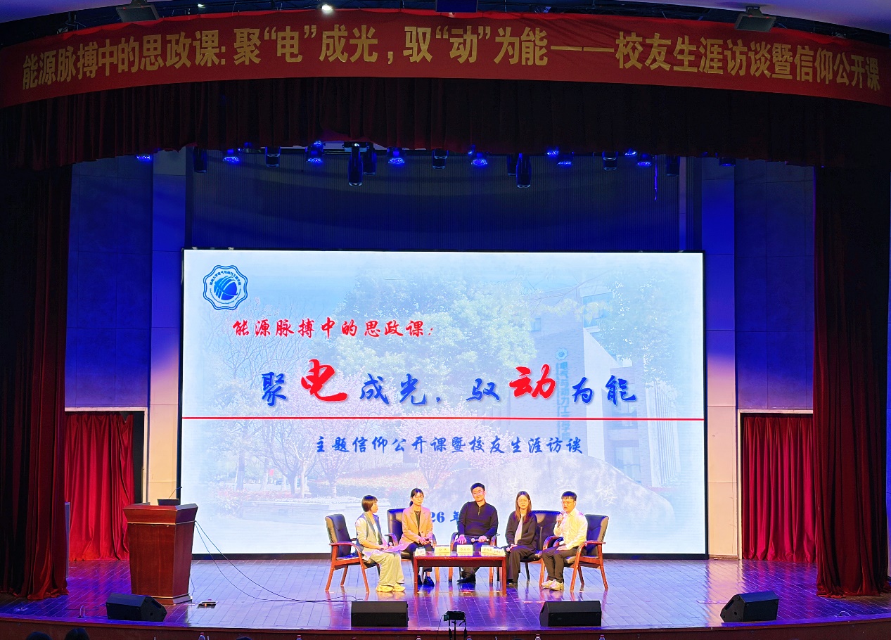 4月18日,威尼斯人-威尼斯人娱乐场 在江宁校区博学楼报告厅举行了“能源脉搏中的思政课:聚‘电’成光, 驭‘动’为能”校友生涯访谈暨主题信仰公开课。活动邀请了国网江苏超高压公司特高压盱眙(淮安)站运维值班员孙斌、中广核江苏新能源有限公司产业发展部市场开发主管马宗西、长江三峡集团江苏能源投资有限公司集控运维中心主办黄雨薇、常州博瑞电力自动化设备有限公司人力资源专员岳鹏翔四位校友,威尼斯人 党委副书记张炜、辅导员雷镕甄、于涵以及威尼斯人 全体2025级本科生参加活动。